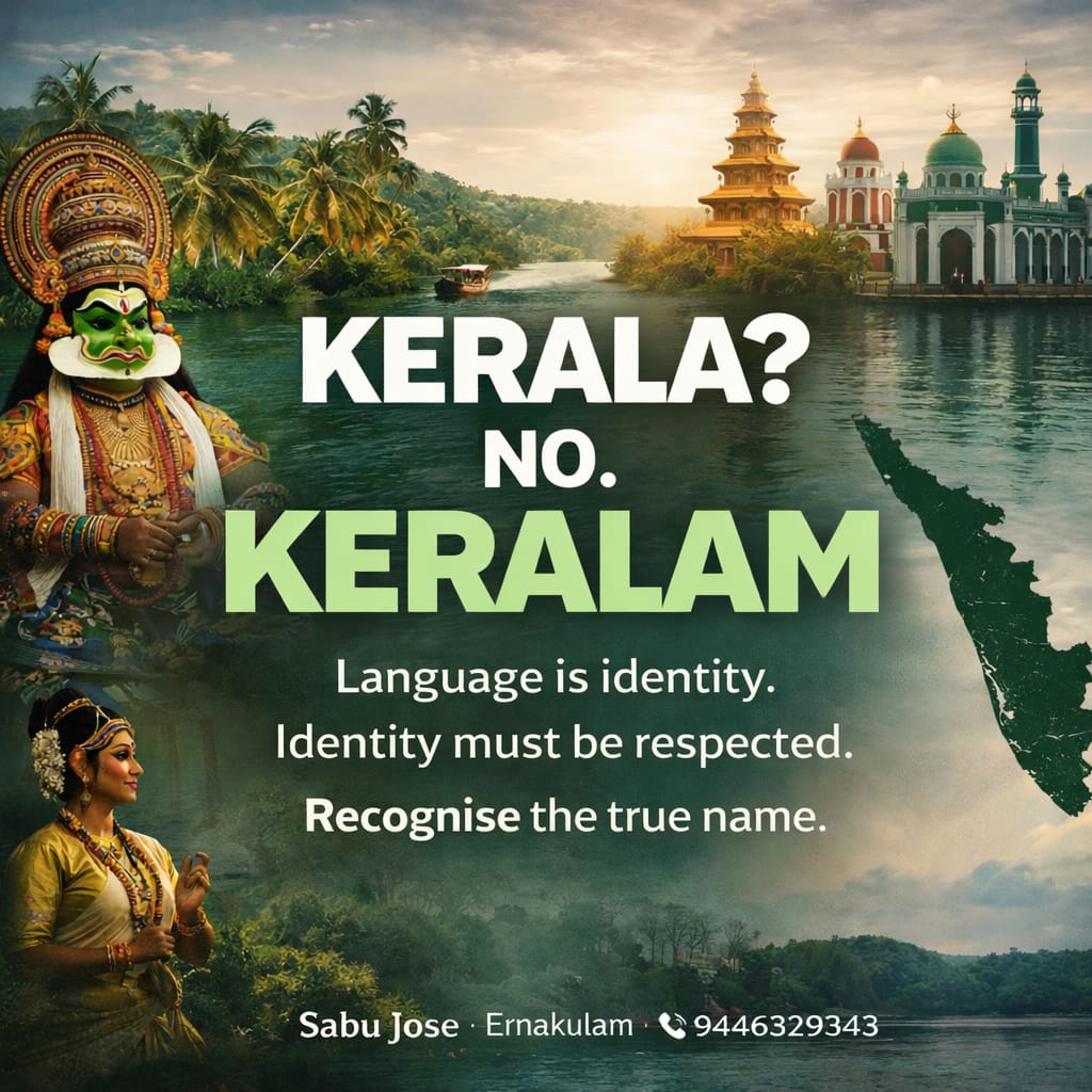 The name of our state is still recorded in the English form “Kerala” in the Constitution of India. But for every Malayali who experiences the language, history and culture of this land, this land is still “Kerala”. In homes, schools, places of worship, literature and songs — the name “Kerala” lives everywhere.