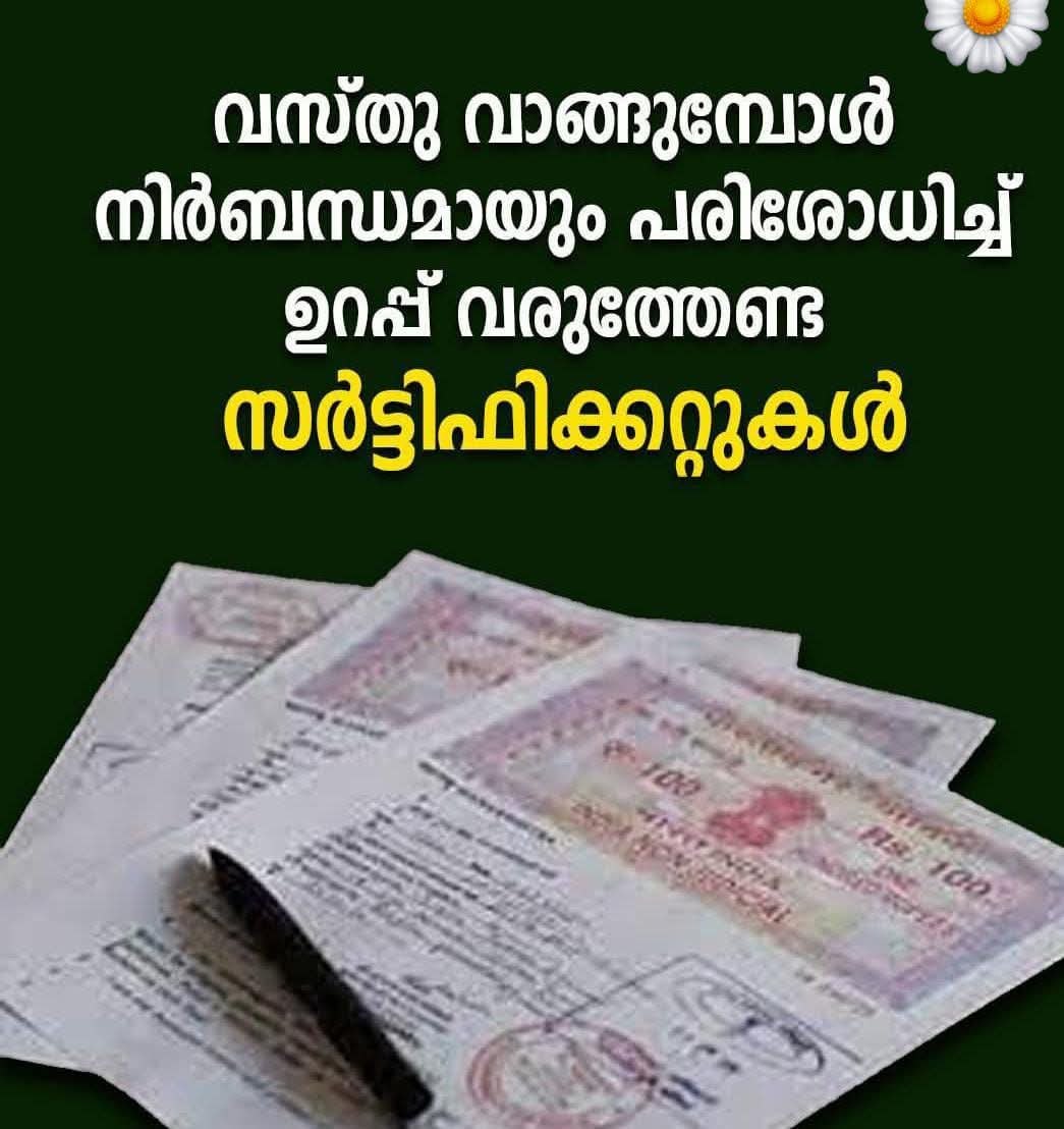 ഈ രേഖകൾ എല്ലാം തന്നെ പരിശോധിച്ച് ഉറപ്പ് വരുത്തിയതിന് ശേഷം മാത്രം ഇടപാട് നടത്തുക. കഴിയുന്നതും വസ്തു ഇടപാട് നടത്തി പരിചയമുള്ളവരുടെയും, നിയമ വിദഗ്ധരുടെയും സഹായവും തേടുന്നതും ഉചിതമായിരിക്കും….