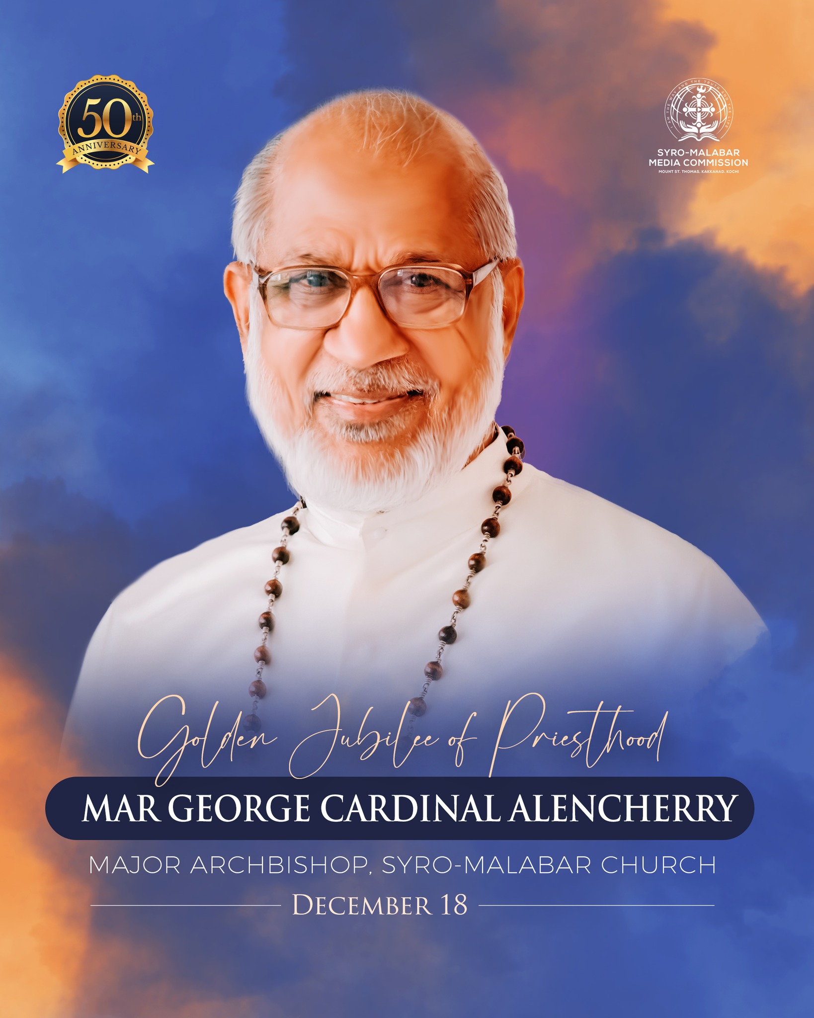 മേജർ ആർച്ച് ബിഷപ്പ് കർദിനാൾ ജോർജ്ജ് ആലഞ്ചേരി പിതാവിന് പൗരോഹിത്യ സുവർണ്ണ ജൂബിലി ആശംസകൾ