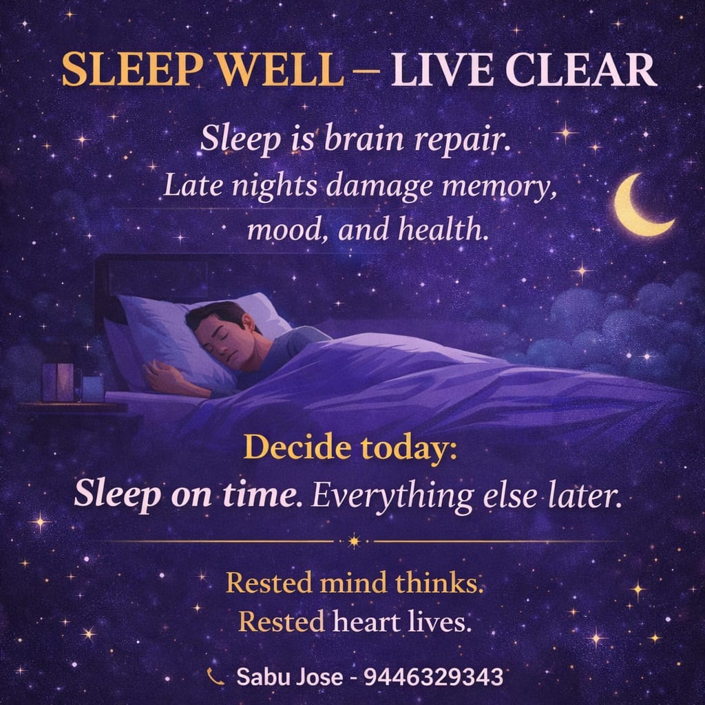 നമ്മുടെ ആരോഗ്യം, മനശാന്തി, കുടുംബസൗഹൃദം — എല്ലാം ഒരു നല്ല രാത്രിയുറക്കത്തിൽ നിന്നാണ് ആരംഭിക്കുന്നത്.