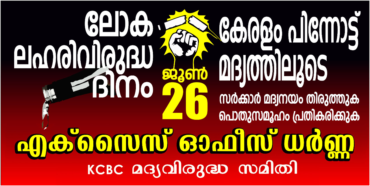 – പ്ലാക്കാർഡിൽ – മദ്യനയം തിരുത്തുക – കേരളം പിന്നോട്ട് – മദ്യനയത്തിൽ – അന്താരാഷ്ട്ര ലഹരി വിരുദ്ധ ദിനം ജൂൺ 26-1 KCBC മദ്യ വിരുദ്ധ സമിതി -ഇന്ന് തന്നെ ക്രമീകരണങ്ങൾ ചെയ്യുക –