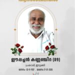 തോപ്രാംകുടി,പ്രകാശ്. കണ്ണൻചിറ ഈപ്പച്ചൻ (89) നിര്യാതനായി. സംസ്കാരം ഇന്ന് 18-1-26 ഞായർ ഉച്ചകഴിഞ്ഞ് 2.30-ന് വീട്ടിൽ ആരംഭിക്കും.|ആദരാഞ്ജലികൾ