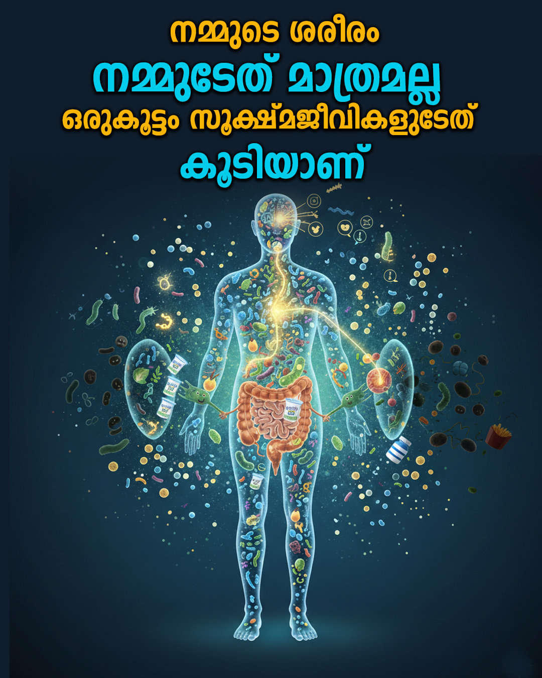 നമ്മുടെ ശരീരത്തിൽ മനുഷ്യകോശങ്ങളോടൊപ്പം ജീവിക്കുന്ന അനവധി സൂക്ഷ്മജീവികളുടെ ഒരു വമ്പൻ ലോകം കൂടി ഉണ്ട്.