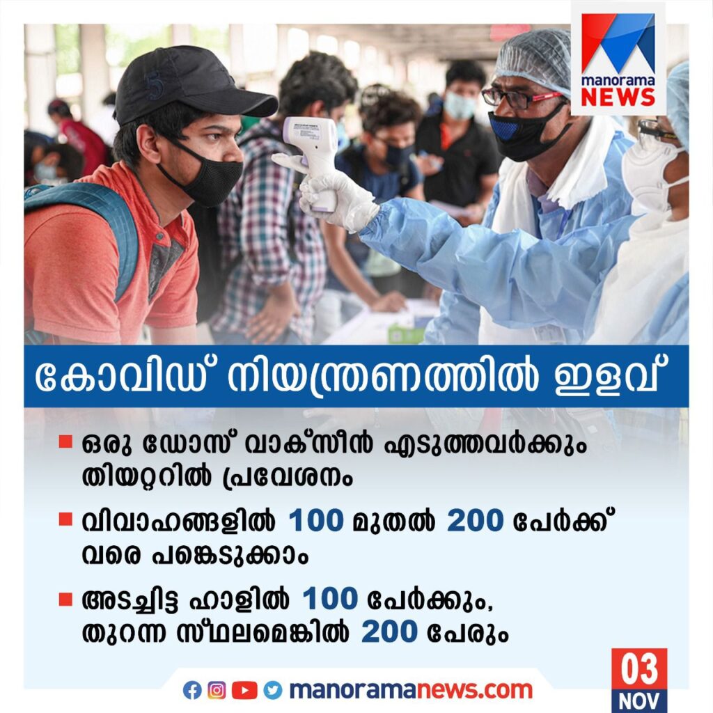 വിവാഹ ചടങ്ങിന് 200 പേർ വരെ ; സിനിമ കാണാൻ ഒരു ഡോസ് മതി ഇളവുകൾ പ്രഖ്യാപിച്ച് സർക്കാർ