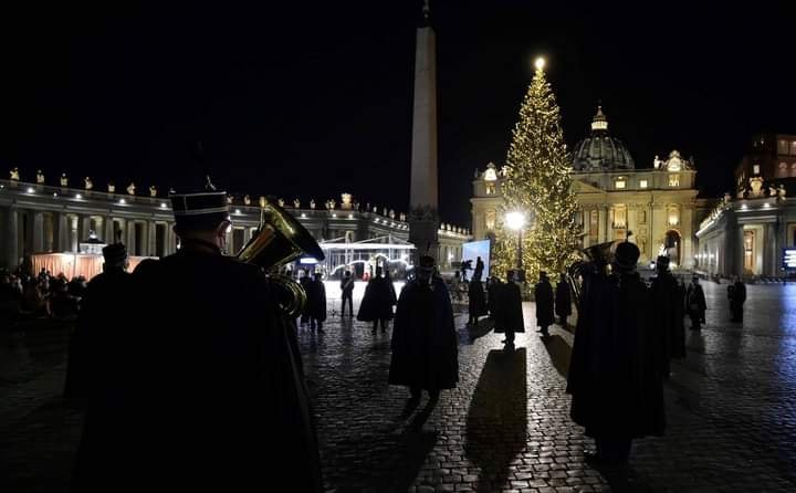 റോം. ഡിസംബർ 11 ന് വൈകിട്ട് 5 മണിക്ക് നടന്ന ചടങ്ങിൽ വത്തിക്കാൻ ചത്വരത്തിലെ ക്രിസ്തുമസ് പുൽകൂടിലും, ക്രിസ്തുമസ് ട്രീയിലും ദീപങ്ങൾ തെളിയിച്ചു. ഈ വർഷത്തെ 100 അടി ഉയരം വരുന്ന അലങ്കരിക്കാൻ വേണ്ട അലങ്കാര വസ്തുകൾ റോമിലും സ്ലോവേനിയ യിലും അലഞ്ഞുതിരിയുന്ന ഭവനങ്ങൾ ഇല്ലാത്ത 400 ഓളം പാവങ്ങൾ ചേർന്നാണ് ഉണ്ടാക്കിയത്. മരത്തിലും, വൈകോലിലും ആണ് അലങ്കാരങ്ങൾ നിർമിച്ചിരിക്കുന്നത്… വി. ഫ്രാൻസിസിൻ്റെ ഭാഷയിൽ നമ്മെ വിശുദ്ധി യിലേക്ക് നയിക്കുന്ന സുവിശേഷപരമായ ദാരിദ്ര്യമാണ് ഈ വർഷത്തെ പുൽകൂടിൻ്റെ പ്രത്യേകത.